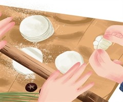 周六早上,我特别想吃饺子。我拉着妈妈去菜场,买了面粉、猪肉和蔬菜,便蹦蹦跳跳地回家了。 妈妈开始变“魔法”喽!她先舀一些面粉,倒在大盆里,“哗啦啦”加水,揉成软软的面团。再把面团分成一个gan个剂子,用擀面杖一擀,剂子变成圆圆的饺子皮,像小...