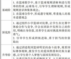 摘要;在课程思政视域下,小学体育与思政教育的融合是落实立德树人根本任务的主要途径。本研究以小学篮球项目为例,提出“三阶四维”的小学体育与思政教育融合的创新模式。“三阶”指的是基础阶、深化阶和升华阶,分别对应学生的思维认知、学习体验、学习践行...