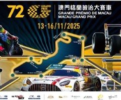 澳門年度國際體壇盛事—“第72屆澳門格蘭披治大賽車”於 11 月揭開戰幔,將舉行七項精彩賽事:澳門格蘭披治大賽—國際汽聯FR世界盃、澳門GT盃—國際汽聯GT世界盃、澳門東望洋大赛—Kumho國際汽聯TCR世界巡迴賽澳門站、澳門四級方程式大赛...