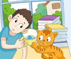 我买了一个漂亮的陶瓷水杯,杯底印着一只蓝色的小鲸鱼。 啊呜一看见水杯,就一蹦三跳地蹿过来,抽动着比侦探还要灵敏的鼻子,围着水杯打转。似乎发现了什么重大线索,它一探一探地把爪子伸进杯子里,又拔出来舔一舔,弄得水花四溅。 “臭脚猫!不许你在我水...