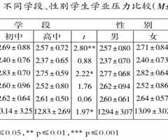 摘要:采用分层整群抽样方法对衡水市1442名中学生进行问卷调查,了解中学生学业压力、父母支持和心理健康的现状及三者之间的关系。结果表明,中学生主观感知到的学业压力按大小排序依次为:期望压力、竞争压力、要求压力、自我发展压力和挫折压力;初中生...