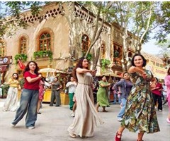 在和田市城区的中心,一座融合了维吾尔族民居与中原传统飞檐斗拱建筑风格的城门高高矗立,风格独特。城门上,“和田团城”4个大字,在午后阳光的照耀下格外光彩夺目。穿过城门,一座欣欣向荣的“团结之城”便呈现在大家眼前。 街区里基本上都是深沉大气的土...