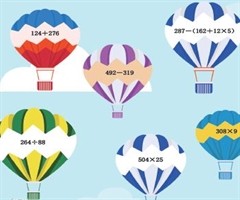 左页的每个气球上都写着一道算式,右页的每个气球上都写着答案。请为每道算式找到对应的答案。...