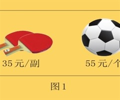 憨憨猪家新开了一家超市,超市开业期间部分商品有优惠。 狐狸晶晶一大早就来到超市,在超市里转了一圈,选中了两副乒乓球拍和两个足球。 狐狸晶晶看了看价格(如图1)说:“憨憨猪,我来帮你算出钱数吧!”憨憨猪说:“可以呀!” “一副乒乓球拍35元,...