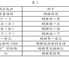 摘要:本文讨论“‘稍微’+单音节动词+响应成分”结构,尝试对动词进行分类。通过对结构中后部分响应成分分类探寻单音节动词分类,以及解释单音节动词进入该结构的条件。同时通过对结构的外在表现,总结解释该结构成立的内在原因——动词语义不同,即必须通...