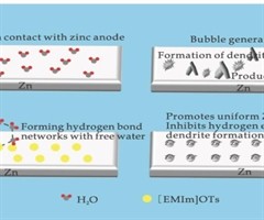 摘要:锌负极不可控的枝晶生长和水诱导腐蚀问题严重制约了水系锌离子电池(AZIBs)的实际应用.本文提出采用离子液体1一乙基一3一甲基咪唑对甲苯磺酸盐([EMIm]OTs)作为多功能电解液添加剂以解决上述挑战. [EMIm]+ 阳离子与 [O...