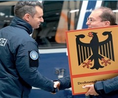 1.德国内政部长多布林特启用联邦警察无人机防御部门 当地时间2025年12月2日,德国阿伦斯费尔德,德国内政部长多布林特宣布正式启用联邦警察无人机防御部门。图为德国内政部长多布林特向警察局长巴斯蒂安·拉默斯移交刻有“联邦警察无人机...