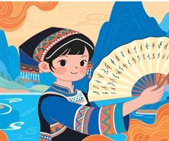 江永瑶族执扇少女瑶族女孩...