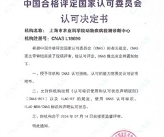 近日,接中国合格评定国家认可委员会(China National Accreditation Service forConformityAssessment,CNAS)通知,上海市农业科学院动物疾病检测诊断中心(以下简称"中心&q...