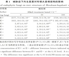 摘要:植物的根、茎、叶具有各自的生理功能和适应环境的形态结构。本研究以带有Epichloё内生真菌的布顿大麦(Hordeum bogdanii)(E+)和不带内生真菌的布顿大麦(E-)为试验材料,用50 mmol·L-1和100 ...
