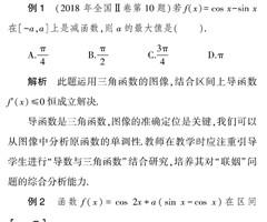 【摘要】 新高考背景下导数与三角函数结合,题型较为复杂,涉及范围较广,难度比较大,这对教师教学水平提出了很高要求.本文主要从函数的基本性质,即单调性、奇偶性、对称性,以及大考中命题点分析来阐述这类“联姻”问题在教学中的教学策略研究. 【关键...