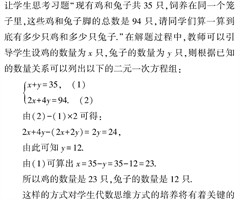 【摘要】 随着当今新课程教育改革的不断深化,初中数学的教学方法与教学模式都发生了全面的变化,其中,思维培养在初中数学的教学之中受到了更高的关注.而在初中的数学知识之中,很多知识都需要借助于代数思维的方式来理解.基于这一情况,本文对初中数学教...