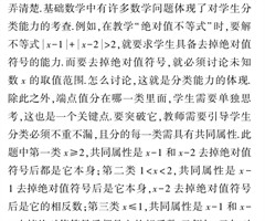 【摘要】学生基础知识、基本方法和基本技能的培养离不开学生的数学思维能力的培养.学生思维能力及其数学品质的提高是数学教学中最根本的任务.文章结合基础数学课程内容的教学实际,从分类能力、转化能力、抽象概括能力和可逆思维能力等四个方面来谈培养学生...