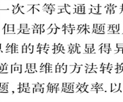 【摘要】基于逆向思维的初中数学解题模式建构,已成为当前数学课堂的重要环节.逆向思维对于优化学生思维结构,提高学生综合素养具有重要意义.基于此,文章阐述了教师通过引导学生运用逆向思维判断数学知识和习题、解决运算问题以及证明问题,以期为相关教育...