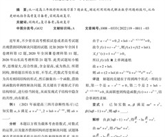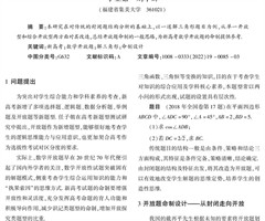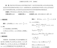 摘要:导数中的不等式恒成立求参问题是导数中一类非常重要的问题,如何处理这类问题,也是很多学生觉得棘手的问题.本文以一道模考题为例,通过课堂教学中的深入讨论,逐步启发学生从不同角度解决问题,从而培养学生灵活运用数学知识分析问题和解决问题的能力...