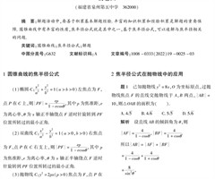 摘要:解题活动中,要善于积累基本解题经验.丰富的知识积累和经验积累是解题的重要保障.圆锥曲线中有丰富的性质,焦半径公式就是其中之一,基于焦半径公式,可以速解与焦半径相关的问题. 关键词:圆锥曲线;焦半径公式;解题 中图分类号:G632 文献...