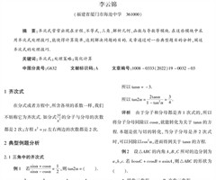 摘要:齐次式常常出现在方程、不等式、三角、解析几何、函数与导数等模块.在这些模块中采用齐次式处理技巧,能使得计算简单,达到解决问题的目的.文章通过对一些典型题目的分析,阐述齐次式的处理技巧. 关键词:齐次式;处理策略;简化计算 中图分类号:...