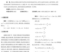 摘要:导数知识模块是高中数学知识的重要组成部分,其作为选修内容进入高中课程,为研究函数提供了简洁有效的方法.以2022年一道一轮复习的压轴填空题为例,从几个不同的视角进行分析,尝试寻找共同点,期待对提高这类解题有一定帮助. 关键词:函数零点...