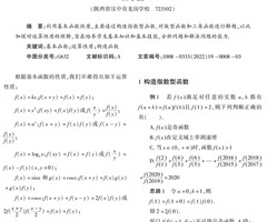 摘要:利用基本函数性质,主要通过构造指数型函数、对数型函数和三角函数进行解题,以此加深对运算性质的理解,旨在培养学生基本知识和基本技能,分析问题和解决问题的能力. 关键词:基本函数;运算性质;构造函数 中图分类号:G632 文献标识码:A...
