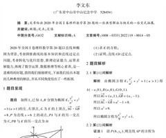 2020年全国高考Ⅰ卷理科数学第20题的解法与变式拓展