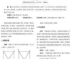 摘要:正方形和正三角形都是平面内的对称图形,证明一个三角形为正三角形有很多的方法,可证三角相等、三边相等、等腰三角形中有一个角为60°等.文章通过一道高中数学课本习题,探究了这些方法. 关键词:习题;构造;同一法;探究 中图分类号...