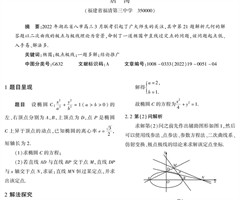 摘要:2022年湖北省八市高三3月联考引起了广大师生的关注,其中第21题解析几何的解答题以二次曲线的极点与极线理论为背景,命制了一道椭圆中直线过定点的问题,该问题起点低、入手易、解法多. 关键词:椭圆;极点极线;一题多解;结论推广 中图分类...