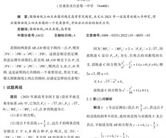 摘要:离心率是圆锥曲线的一个重要性质,是刻画圆锥曲线形态特征的基本量.因此,求椭圆、双曲线的离心率就成了历年高考的热点.2021年全国乙卷11题再次考查了离心率的范围,在此结合近年来的高考题和各地最新模拟题,浅谈构造法解圆锥曲线离心率有关问...