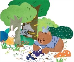 森林里的草地上有一堆拼图零件。 一只小兔子看见了,蹦蹦跳跳地跑过来。 “噢,是拼图呀!”小兔子兴致勃勃地拿起拼图,一块一块地拼起来。 渐渐地,有了一个轮廓,好像……好像是一顶帽子? 小兔子挠挠头,想要继续拼,一抬头,看见对面来了一匹狼。 小...