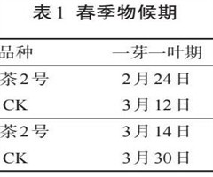 摘要:茶树新品种宜茶2号系采用系统选育法,从宜昌大叶茶群体种中选育得到的特早生种。该品种属灌木型至小乔木型,生长势强,耐寒性较强,耐旱性强。春茶样内含物丰富,水浸出物含量为48.5%、茶多酚含量20.4%、氨基酸含量4.6%、咖啡碱含量4....