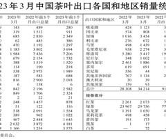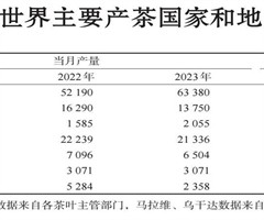 2023年3月世界主要产茶国家和地区茶叶产量...
