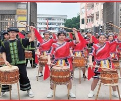 在南宁市上林县镇圩瑶族初中的操场上,总能听到一种特别的声音一那是瑶山鼓激越明快的鼓点。每当清脆的鼓声响起,系着红绸的鼓棒如灵动的蝴蝶般上下翻飞,与鼓面有力地碰击,《瑶山鼓》的表演便拉开帷幕。瑶山鼓是上林布努瑶族(瑶族主要支系之一)的传统乐器...