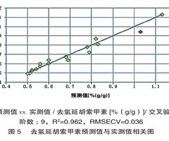 [摘要]目的建立延胡索配方颗粒水分、醇溶性浸出物、延胡索乙素、去氢延胡索甲素多指标的近红外光谱快速检测方法。方法以已知的延胡索配方颗粒水分、醇溶性浸出物、延胡索乙素、去氢延胡索甲素含量值为对照,运用偏最小二乘法(PLS)选择合适的光谱范围及...