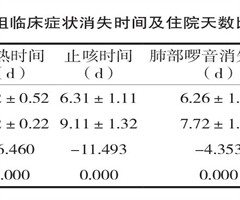 [摘要]目的探讨阿奇霉素加用化痰止咳合剂及止咳贴治疗肺炎支原体肺炎的临床价值。方法选取2018年1月至2020年1月无锡市中医医院儿科100例肺炎支原体肺炎住院患儿,使用随机数字表法分为观察组与对照组,每组各50例,观察组给予阿奇霉素加用我...
