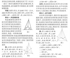 平面几何问题是初中数学的一个重点和难点,其知识点覆盖方面广,题型多样,常以几何图形如三角形、平行四边形、圆等为载体来研究角度大小、边的长度等.很多同学在解答平面几何题时,因为找不到已知条件与待求结论之间的关联,而感觉无从下手.本文以一道以三...