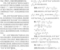 初中数学中“分式的化简”是非常重要的知识点,其运算的综合性和技巧性较强.如果化简运算方法选取不当,不仅会使解题过程变得复杂,而且错误率高.下面介绍三种分式化简的常用技巧:通分约分、因式分解、提取公因式.同学们需注意的是,有时候要综合运用这三...