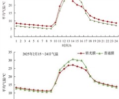 摘要:为研究转光膜对设施草莓生产环境及生长结果的影响,对转光膜棚和普通膜棚中的气温、地温、相对湿度及光照及草莓生长结果等指标进行测定。结果表明,转光膜在棚室温度较低时保温效果较好,在棚室温度较高时降温速度较快,比较适合草莓春季生长对温度的需...