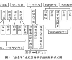 [摘 要] 虚拟仿真教学是目前高等教育教学在信息化时代背景下的改革发展重要方向之一。教学团队在“推拿学”虚拟仿真网络教学平台建设过程中,通过将人体结构透视、骨骼3D建模、生物力学、动画情境等虚拟仿真教学展示手段综合运用于不同类别推拿手法和临...