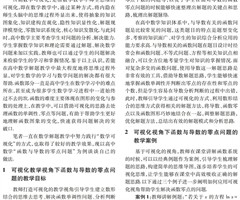 摘 要:函数与导数的零点问题是函数教学与学习中的难点所在,借助可视化视角,有助于学生更好地理解函数图象的变化,快速获得解决问题的突破口.以函数与导数的零点问题的教学目标与教学案例分析为例,进一步阐明可视化视角下数学解题教学要不断引导学生逐步...