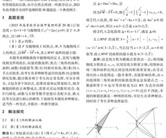 摘 要:圆锥曲线问题在高考中既是重点也是难点,其面积最值问题更是热点.本文探究2023年高考数学全国甲卷理科第20题的多种解法,并在此基础上溯源试题的命题背景,分析试题对解析几何中圆锥曲线教学的引导作用,提出一些教学建议. 关键词:圆锥曲线...