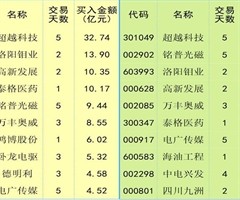 一周超大单资金净增(减)仓股前20名