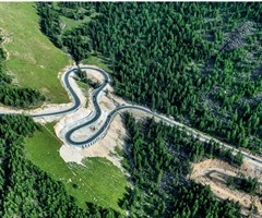俯瞰阿禾公路,来往车辆有序行驶 高山、森林、峡谷、蓝天、白雪新开通的新疆阿禾公路沿线,白雪的高山、蜿蜒曲折的山路、错落有致的原始森林引来了众多自驾游和摄影的爱好者。 阿禾公路,即新疆阿勒泰地区G681线阿勒泰至禾木喀纳斯公路(简称“阿禾公路...