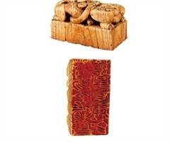 前言 2021年4月,“妙手文心·南京博物院藏竹木牙角珍贵特展”在南京开展。一枚该院所藏的明代象牙印章尤其醒目,该印章印面硕大,长8.3厘米,宽4.3厘米,高4.4厘米,配民国楠木盒一个。印钮高浮雕,刻二螭龙蛰伏于印章之上,双目圆...