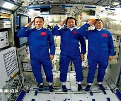 6月17日,三名航天员在天和核心舱向全国人民敬礼。 6月17日,航天员聂海胜、刘伯明、汤洪波乘神舟十二号载人飞船成功飞天,成为中国空间站天和核心舱的首批入驻人员,开启了中国载人航天工程空间站阶段的首次载人飞行任务。 9时22分,长征二号F遥...