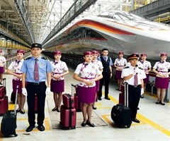 6月23日,全新复兴号智能动车组在重庆西动车所正式亮相。列车车厢内增设有自动售货机、无障碍车厢、盲文标识、“静音车厢”设置功能、座椅USB充电接口等。据悉,全国铁路第三季度列车运行图于6月25日实施,复兴号智能动车组当日将集中上线运行。(中...