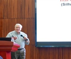 2025年10月23日,复旦大学相伯讲堂,斯科特·埃默尔为该校生命科学学院师生进行学术讲座。 彭柏辉摄 2025年10月23日下午3点半,复旦大学江湾校区生化楼报告厅,相伯讲堂学术演讲马上开始,斯科特·...