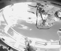 2024年12月17日在北京航天飞行控制中心拍摄的神舟十九号航天员蔡旭哲(上)、宋令东(下)在气闸舱舱门内外工作的画面。李杰摄 建成1000多天以来,中国空间站累计支持7个航天员乘组在轨工作生活,支撑200余项空间科学与应用项目大漠苍茫,胡...