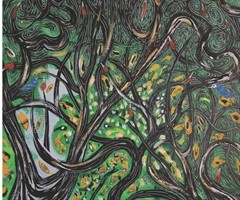 孔雀传说 40cm×50cm 布面丙烯 2025年她们握着我的手,眼里泛着泪水,见到我跟见到了心理医生一样,把我的手都握麻了,可见她们急切的求生求助的欲望。一位我感觉病得比较严重,另一位感觉是在恢复的期间,思维逻辑清晰,我能感觉到...