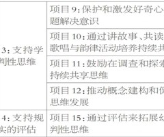 【摘要】《持续共享思维与情绪情感健康量表》将“支持幼儿批判性思维发展”列为重要评估指标,为构建幼儿批判性思维教育机制提供了依据。应当重新审视幼儿园课程质量内涵,完善幼儿园课程实施策略,将幼儿批判性思维教育渗透于幼儿园一日生活中。...
