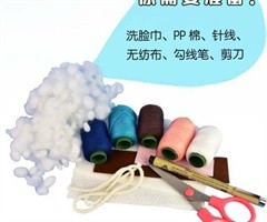 1 剪两张同样大小的正方形洗脸巾,用勾线笔在其中一张洗脸巾上画出雪花图案。 2 沿着画好的图案,用蓝色线缝出点线和线条末端的圆点。 注意:请在爸爸妈妈的陪同下制作 3 用棕色无纺布剪出微笑的眼睛,然后用棕色线缝到雪花上,再用粉色线缝出嘴巴。...