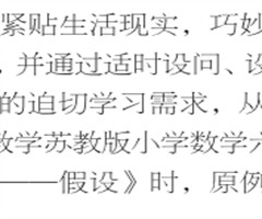 根据数学教育家弗赖登塔尔的观点,数学学习的本质是学生的再创造。“再创造”的实现,根植于学生主动运用已有的知识和经验进行探索的过程。课堂上,教师以学生已有的知识和经验为基础,创设情境、设计数学活动,引导激励每个学生主动观察、操作、猜测、验证、...
